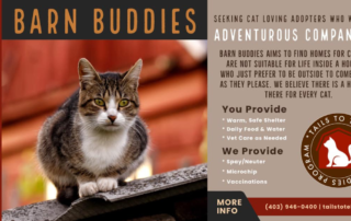 Barn Buddies Program We are excited to announce our BARN BUDDIES Program! We often receive cats from rural and urban communities that are just not comfortable living indoors or interacting with people in a close contact environment.  These cats are assessed, and after time