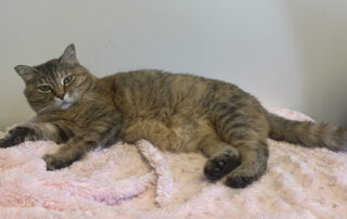 Tannis "When I was about a year and five months old, I arrived at Tails to Tell with my five kittens. The six of us were found in Strathmore and were brought to the Shelter in three rabbit hutches; myself and one of my kittens in