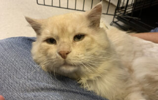 Wrecks You may be questioning why our team chose this name and spelling for such an angelic and handsome fella. Wrecks is a rescue cat who arrived at Tails to Tell in pain and in very poor condition. Ear mites were his enemy and