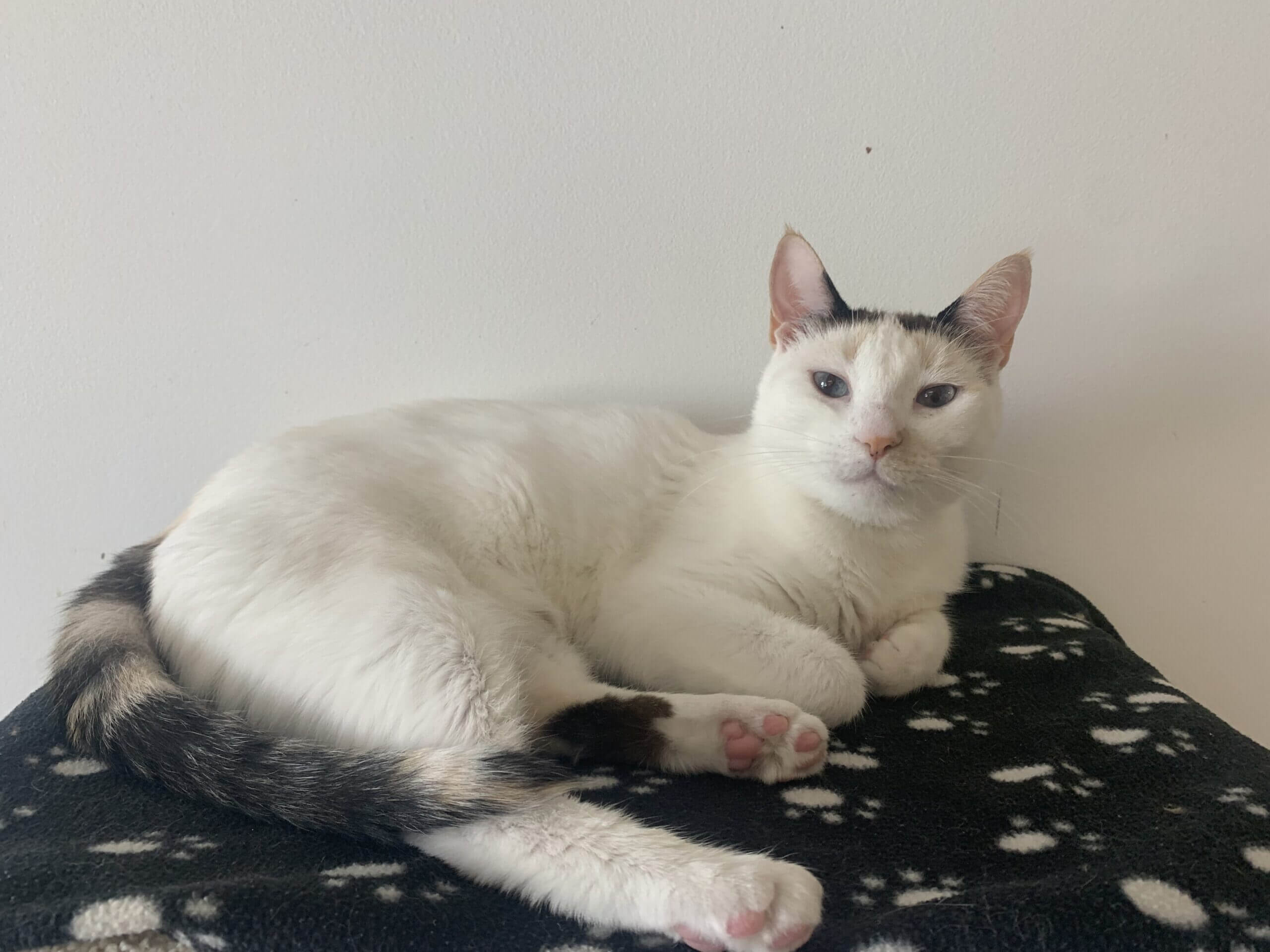 Hi there, my name is Capulet. I have been nicknamed Capi by the Volunteers at Tails to Tell. Before arriving at the Shelter, I was in a home. However, the owners surrendered me after five months and I am not sure why. Now I get to spend my days at the Shelter mostly napping and hanging out with the GenPop crew! I love to rub up against the Volunteers legs to make them aware of my presence and so they will shower me with affection. However, I can sometimes get a bit overstimulated by the number of pets I receive which can cause me to get a bit jumpy. While I might lash out from time to time, I do appreciate love and attention from humans. I may seem a little sassy at first, however once I am snuggled into your lap I feel right at home! I may even begin to knead and suckle your shirt to let you know how much I love and trust you! If you are interested in meeting me, please call the shelter to arrange an appointment! I look forward to meeting you soon! If you are interested in supporting special cats like me at Tails to Tell, please consider making a donation. 100% of all funds goes to the feeding and medical care of Sassy Girls like me and the Vet care and items the Shelter needs to take care of us.