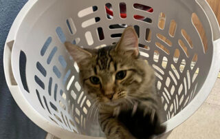 Potter = Love and Joy Potter was a motherless little black kitten who was brought into the shelter with his orange brother, Pumpkin. Two little Halloween kittens. As Potter learned how to be an indoor kitten and do the proper kitten things, he also