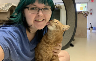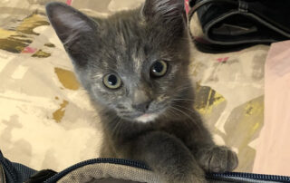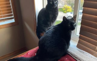 Potter = Love and Joy Potter was a motherless little black kitten who was brought into the shelter with his orange brother, Pumpkin. Two little Halloween kittens. As Potter learned how to be an indoor kitten and do the proper kitten things, he also
