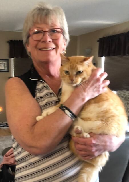 Colleen first heard about Tails to Tell in December 2013 when she was at her local vet’s office and saw a poster on the wall for adoptable cats. This sparked the idea of getting a friend for her playful kitty Bogey. So, off to the shelter she went and quickly adopted Cheddar (aka Cheerio). After visiting the shelter she decided that when she retired she was going to become a volunteer – heaven for a cat lover!
