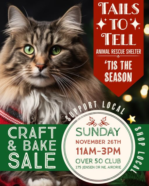 If you want to donate any crafting or baking items for a FUTURE event, please reach out to Colleen at payments@tailstotell.ca and she’ll give you more deets.