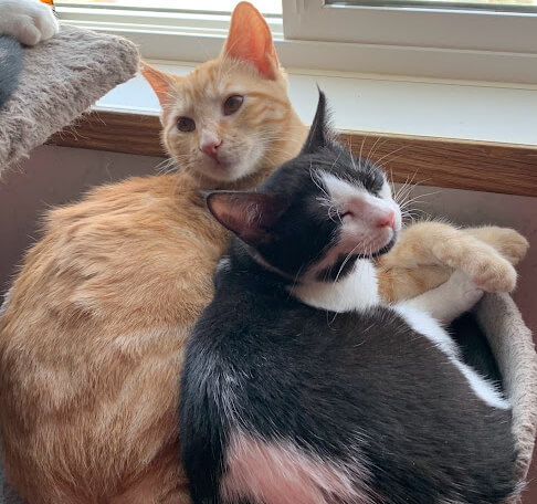 This brother & sister duo love to hang out with each other, but are not considered bonded. They would do best in a home where there’s another kitty resident to snuggle up with, play with and watch the birds in the yard together. Ideally, these two sibling kitties can stay together!